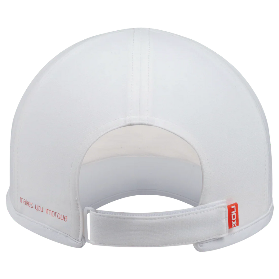 Mantente protegido del sol y el sudor con la gorra de pádel NOX en color blanco. Su diseño ligero y transpirable garantiza frescura durante todo el partido, mientras que la cinta trasera con velcro permite un ajuste personalizado y seguro. Ideal para entrenamientos o partidos intensos, esta gorra te ayuda a mantener la concentración y el confort dentro de la cancha.