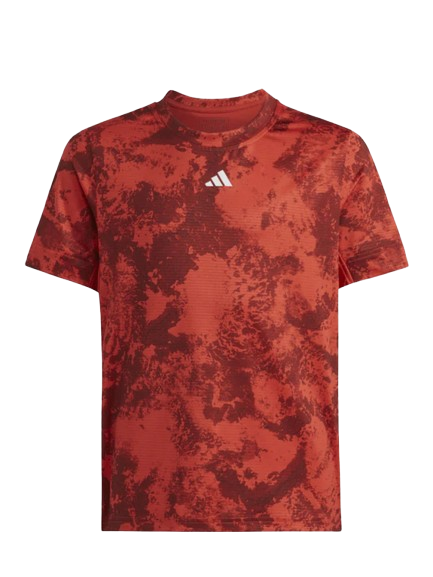 La Adidas Paris Tee Boys es una camiseta ligera y transpirable, diseñada para ofrecer comodidad y rendimiento en la pista. Confeccionada en 93% poliéster reciclado y 7% elastano, cuenta con tecnología de absorción de sudor que mantiene seco al jugador durante el juego. Su diseño deportivo de ajuste ceñido, con cuello redondo y el logotipo de adidas en el frente, combina estilo, ventilación y durabilidad para jóvenes tenistas que buscan moverse con total libertad.